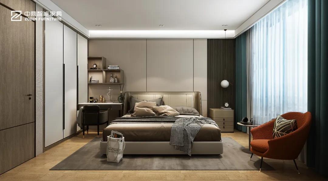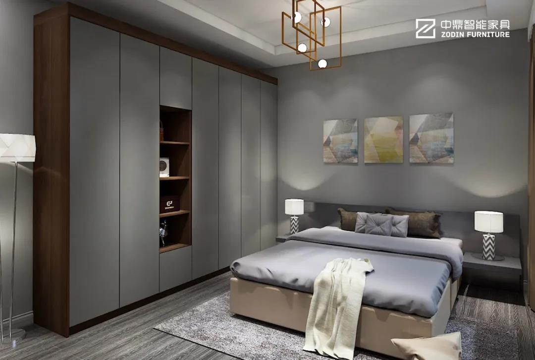主臥家具包括全鋁衣柜、全鋁床頭柜、全鋁梳妝臺、全鋁床、全鋁書桌等等。中鼎全屋定制家具可以把這些功能集中在一個組合柜體上體現(xiàn),節(jié)省大量空間和成本,尺寸設(shè)計更為準(zhǔn)確,美觀實用為一體,讓家也變得更干凈整潔。